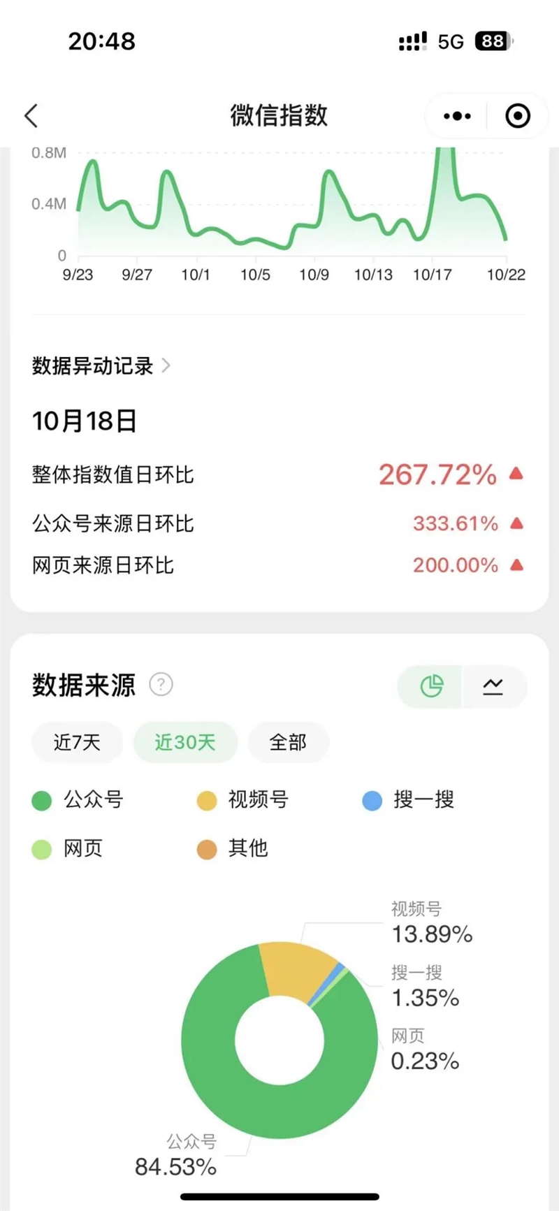 这个面板变化非常有利于我们马上了解过去24小时内微信公号的流量趋势,比过去信息量大很多,但虽然有这么明显的变化,但几乎没有什么人关心,我也不会专门写文章讲了,因为大家不知不觉把注意力都转移到短视频赛道了。
