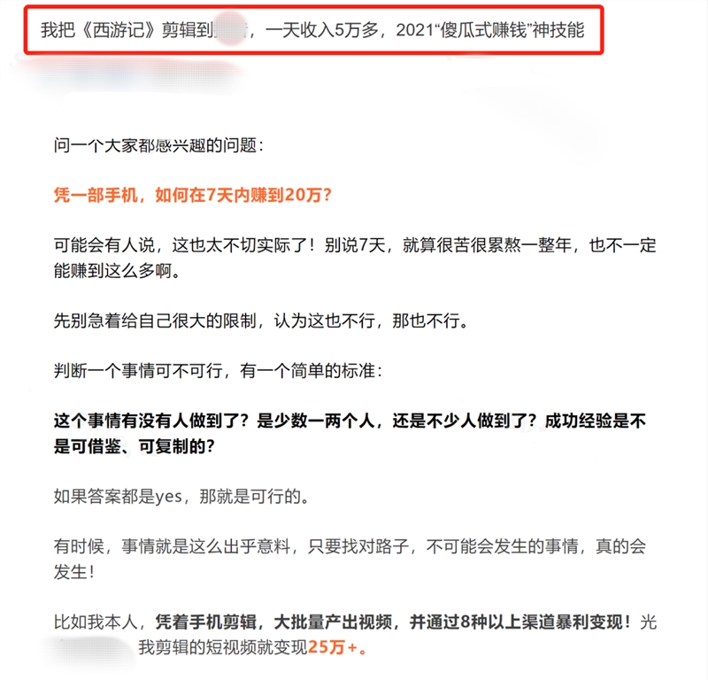 2. 以不相关或夸张的案例突出兼职课程可以获得巨额收益