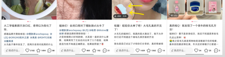 (1)以黑头为例:油按摩+热敷+泥膜+牙线 一套下来,品牌的泥膜只占表达的一句话,但是内容的曝光非常大,这一句话能带来的流量也是非常可观的