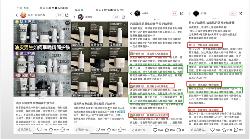 对于护肤并不是很了解的男性群体,这类笔记就属于硬核教程类内容,干货合集,只不过所有的产品都是品牌自己的,伪合集,这类内容有点击比较好的,在用商业流量进行放大