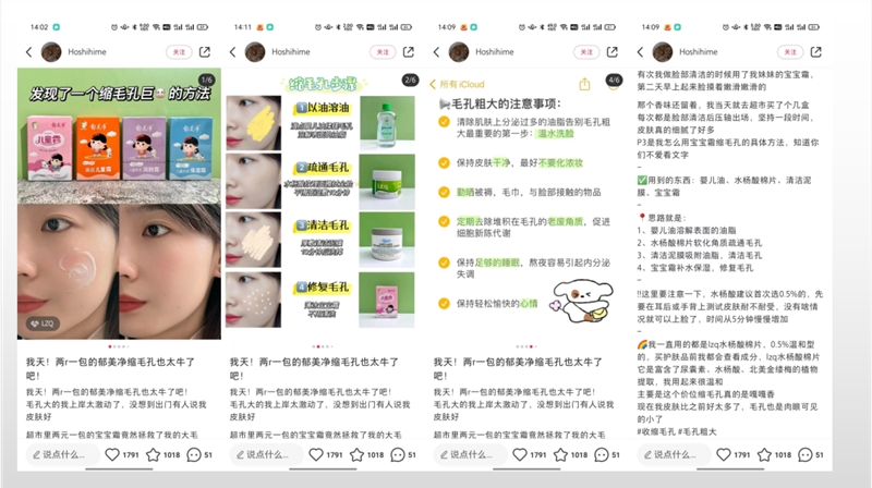 (2)收缩毛孔,内容包含产品使用步骤以及产品应该如何选择+后期维护的要点