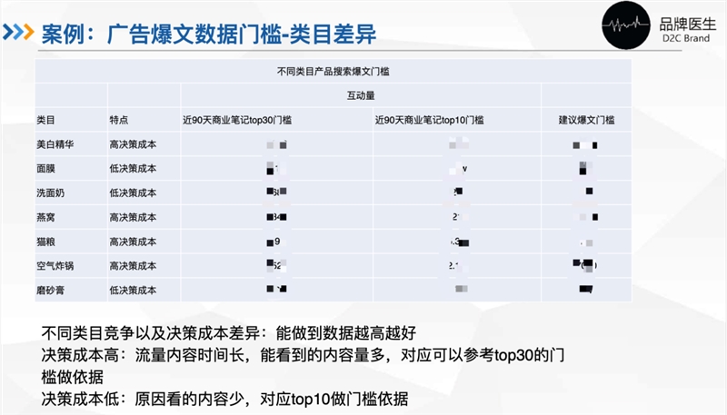 这里又会涉及不同类目,不同决策成本下的数据门槛,我们针对我们服务比较多的类目,进行了数据的抓取与说明,大家可以进行对照查看。