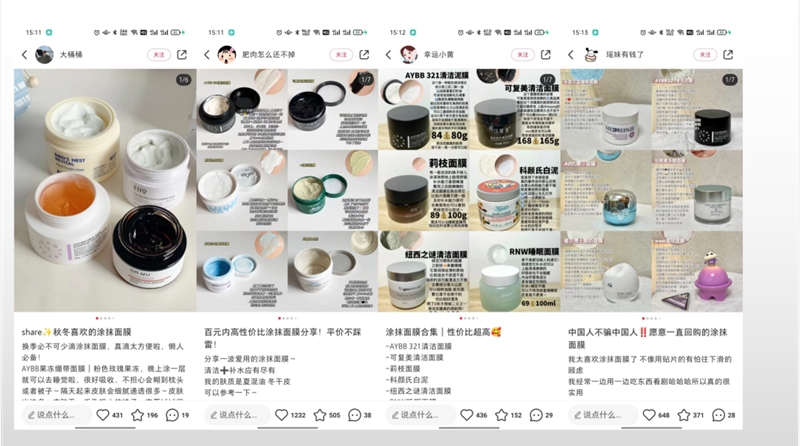 (1)百元以内的面膜合集出现,主讲性价比