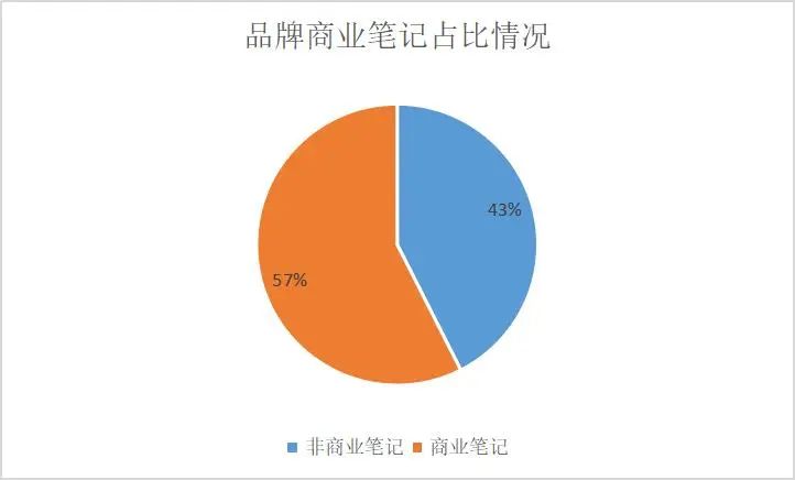 在这个区间内互动量top10的博主以男性居多,我们猜测品牌主要的目标消费人群为男性,还有就是这些笔记中商业笔记占比也是很高的,占比达到57%(如下图3所示),优质内容通过商业化工具 最大化放量。