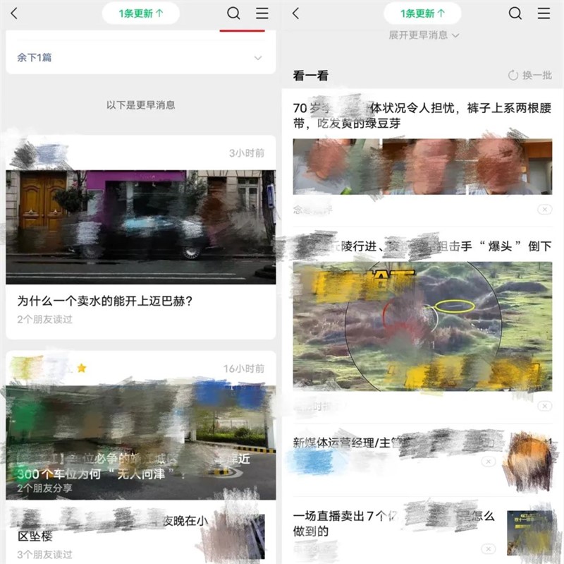 需要注意的是!如果点击上面的“展开更早消息”,下面的“看一看”版块就会直接消失,而是显示所有已关注账号的内容。