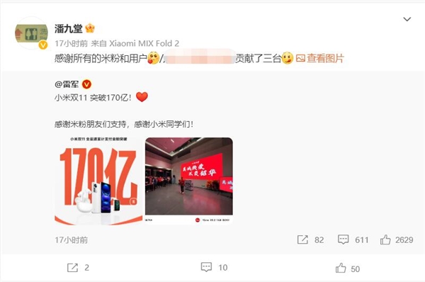 小米双11支付金额破170亿 有米粉花将近万元一口气买3台手机