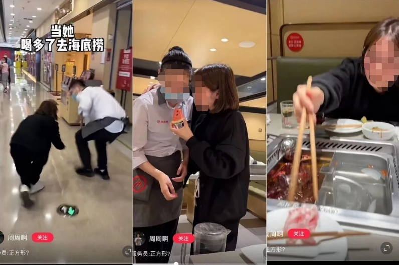 吃海底捞不小心喝醉后,在餐厅喂服务员吃西瓜、和服务员比谁鞠躬更低、给闺蜜喂生肉,各种新奇的举动,让被看作“社交悍匪”的海底捞服务员都招架不住: