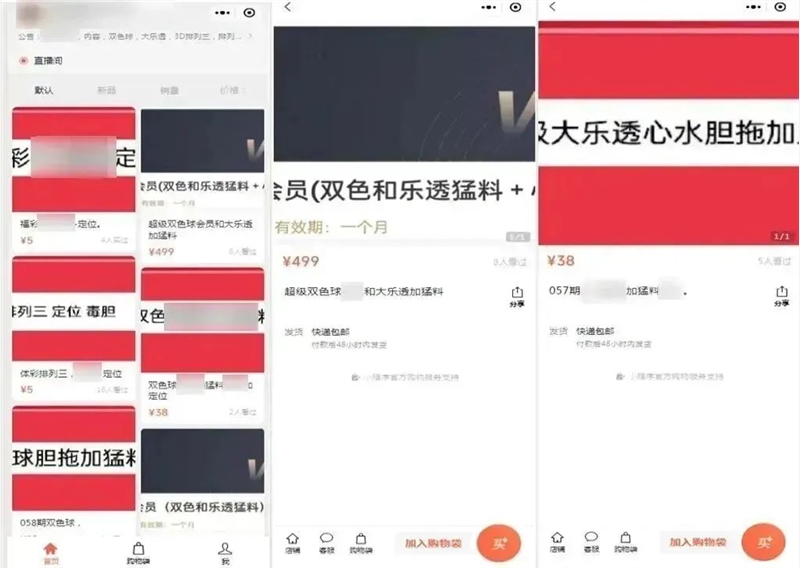 ●在小程序或小商店售卖彩票预测类商品。