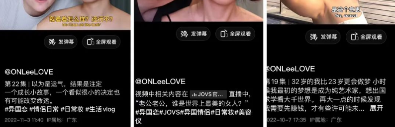 据观测,@ONLeeLOVE的主人公是一对中德情侣,其后续发布的内容都是双方共同出镜,多数情况是女方坐在镜头前一边化妆,一边和旁边的德国男朋友进行生活日常的对话,亦或就某一话题进行观点交流,等妆完全化好之后,视频末尾还会有一段生活碎片,突出两个人的生活状态。