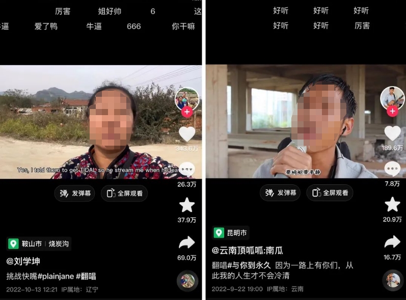 其中,@刘学坤因为在田间翻唱歌曲《Plain Jane》中的英文rap段落而迅速走红,后续的一系列硬核说唱更是让广大网友看到了她的强劲实力,不少网友将其称为“中国第一乡村女rapper”;来自云南大山深处的@云南顶呱呱:南瓜凭借独特的嗓音和魔性的表演风格收获了不少喜爱,一首翻唱于伍佰《与你到永久》更是助其一炮而红,一夜涨粉30余万。