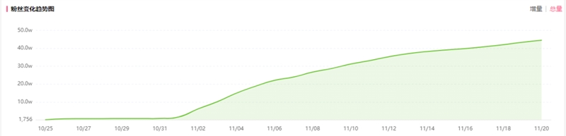 观察三哈兄弟个人账号涨粉趋势显示,一个月不到的时间,账号涨粉几近45万,自11月初起,涨粉趋势便开始加大马力,平均每天吸粉超过2万。