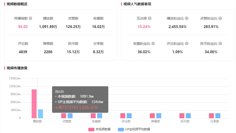 互动率更是有增无已,层层加码达到15.24%的高度,尤其是点赞数破百万,再次加速视频的平台曝光。