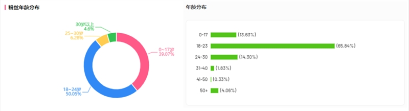 但是瑶生却能在两个平台之间都获得同样高热度的流量,这是得益于他在两个平台之间粉丝画像高度重叠,尤其是18-24岁的群体分别占据半数以上。