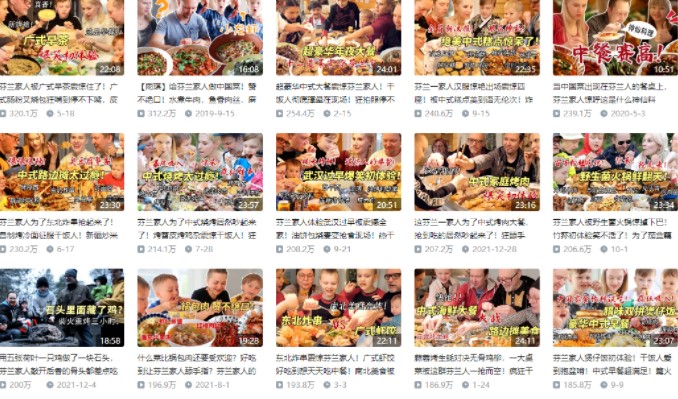 分析@雨琪在芬兰所发布的高播放量视频会发现,无论是哪个菜系,只要属于大众爱吃的那一类,其播放量就不会差。按播放量从高到低排列可以看待,广式早茶、川式火锅、东北炸串等国人日常生活中常吃的美食造就了一期又一期的视频爆款。