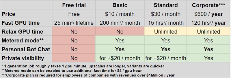 Midjourney的付费信息,图源其官网