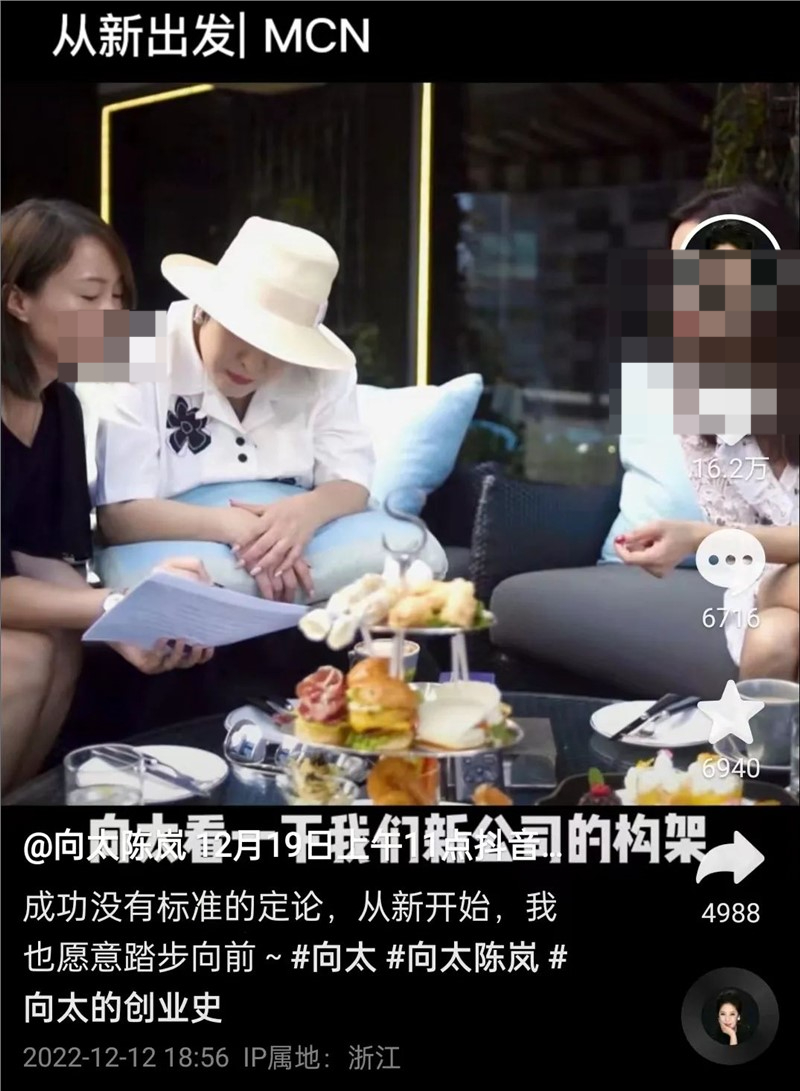 虽然股权显示该公司和向太以及丈夫向华强没有任何直接关系,不过在向太曾发布过的抖音视频中,她提到了自己的三次创业史:第一次是电影,第二次是房地产,第三次则是最近创立的MCN机构。