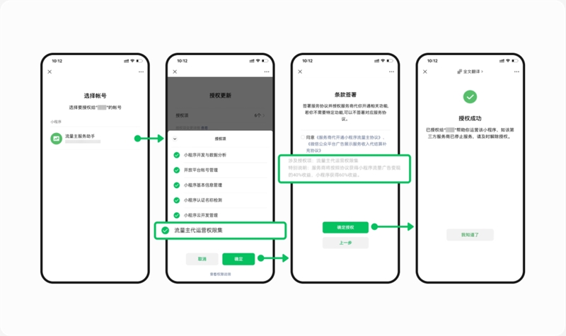 目前,服务商登录微信开放平台,进入“管理中心-第三方平台-流量主代运营”,申请并补充管理员信息和财务资料即可开通此功能。