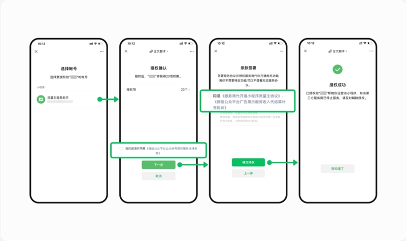1. 权限集配置:服务商通过微信开放平台新增“流量主代运营”权限集(id135)。