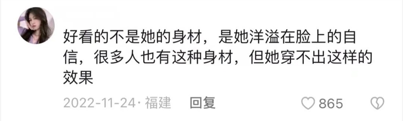 “好看的不是她的身材,是她洋溢在脸上的自信”;