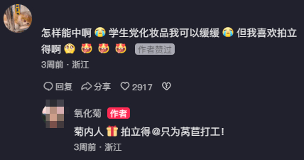 这句话是氧化菊打造的一个记忆点,与她自身的风格也很匹配,所以容易形成传播。