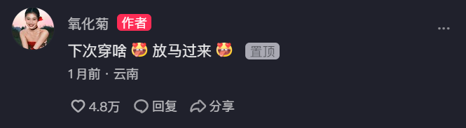 只要创意在线,她的“万物皆可穿”系列就能持续更新,每一次变装还都能引起粉丝的期待,延长了出圈的生命周期。