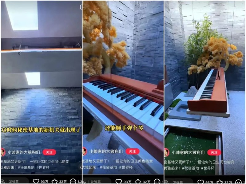 近期,博主最为火爆的内容,是在世界杯观赛室的厕所内新增了一架悬空电子琴。不仅是全自动升降的高级配置,还贴心准备了摆放ipad的凹槽,帮助博主实现蹲坑、弹琴、观赛“三不误”。视频里的各种高科技家具,拍摄时的酷炫转场都引得粉丝既震惊又无语,截至目前,这条视频的点赞数已经高达93W,收藏数达30W。