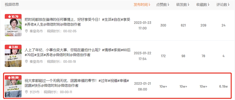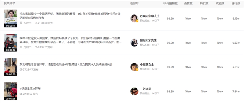 因此春节期间,视频号的热门内容有不少都是与家人团聚、祝福拜年相关,或温馨、或有趣,收获不少互动。
