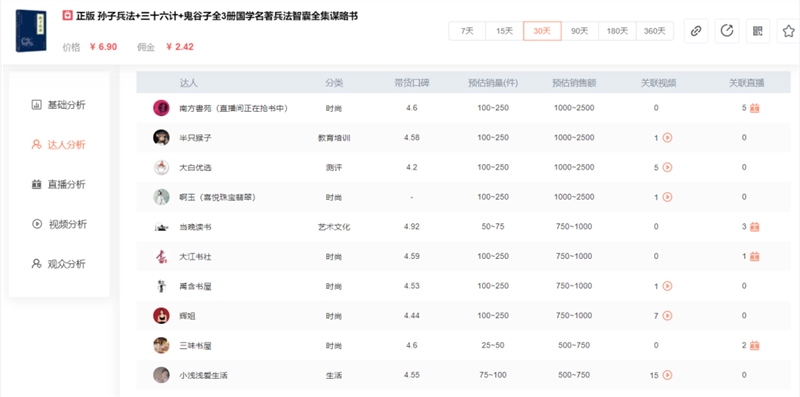许多达人闻风而动,也在直播间、视频上架了《孙子兵法》,不少达人销量都成功破百。