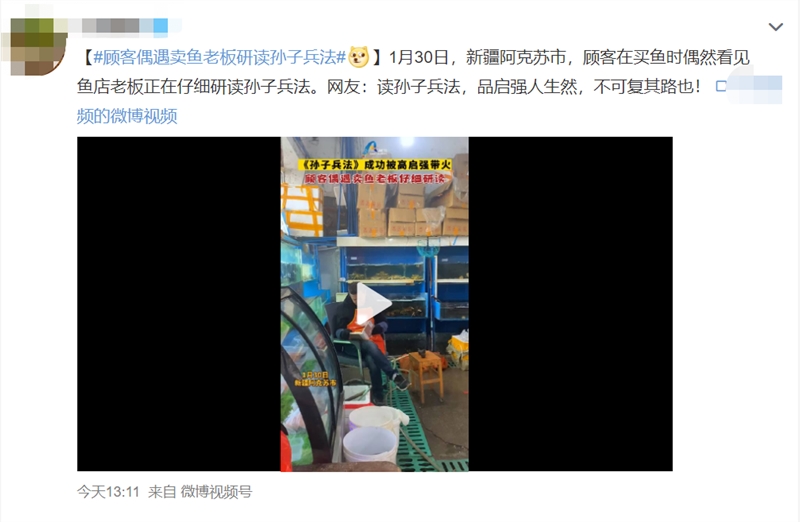 而在抖音之外,微信读书《孙子兵法》飙升榜第一,淘宝《孙子兵法》销量翻倍。网友们表示,“高低得买一本《孙子兵法》”、“读孙子兵法,品启强人生”,甚至有卖鱼老板都开始研读《孙子兵法》。