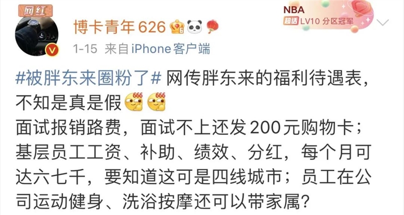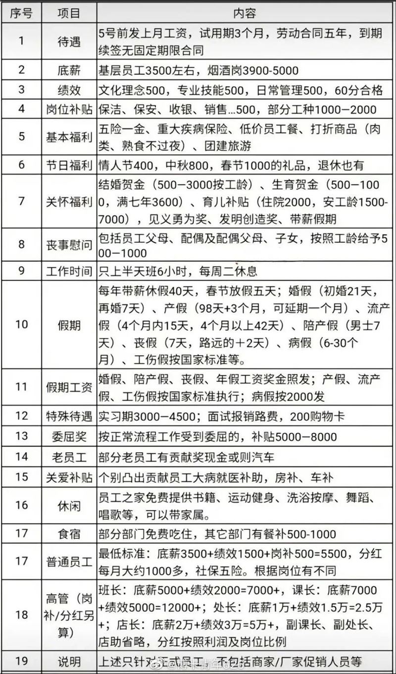 不仅给员工放假,网传胖东来员工的福利更是羡煞旁人,不仅在情人节、中秋节、春节等重要节点有几百元不等的现金福利,还设立了关怀福利、特殊待遇老员工贡献奖等,值得一提的是胖东来还专门设立了5000-8000元的“委屈奖”,给那些在工作中受到委屈的员工以抚慰。