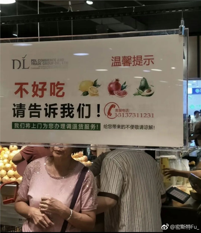 对于零售业来说,销售后的营销才真正开始,在很多超市的生鲜区,品牌怕用户购买后退货,总会挂出霸王条款:该产品一经售出,恕不退还。这难免让人的购物体验大打折扣。