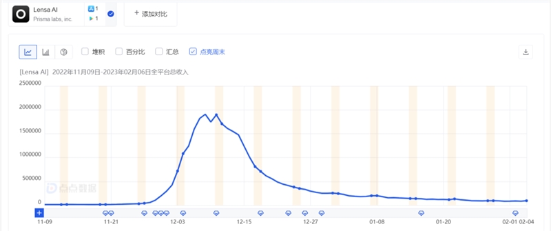 Lensa.ai 近半年全球收入变化情况 | 来源:点点数据