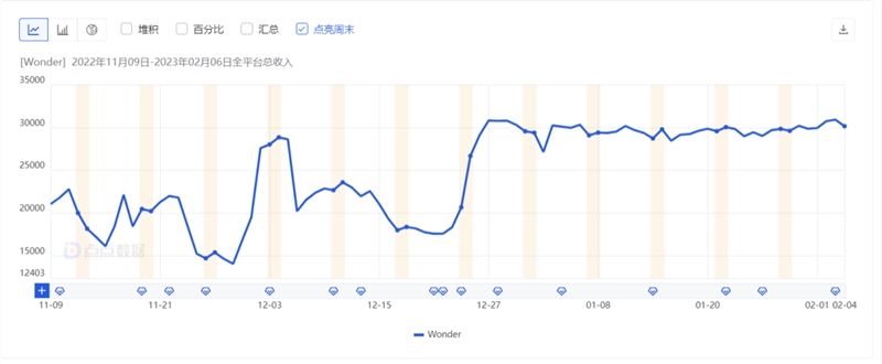 Wonder 近半年全球收入变化情况,虽然波动不明显,