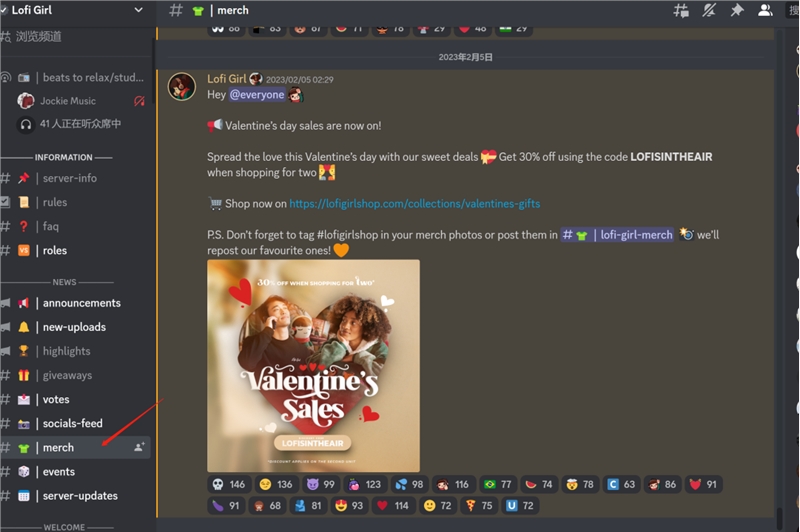 Lofi Girl 的 Discord 群组中专门为周边设了一个标签