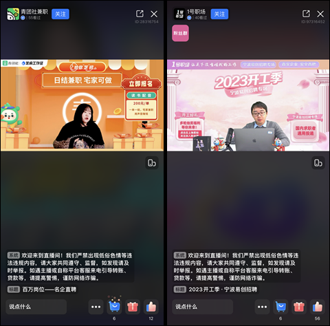 其中,求职平台“1号职场”单场直播场观突破2000万;另一家叫云宠宝的宠物生活平台同样知名度不高,但足足吸引了5200万单场观看。
