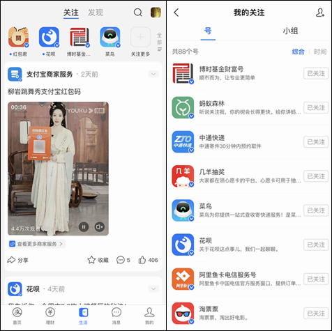 而去年7年,支付宝生活号刚刚完成从原来单一的图文消息,升级为短视频、直播、图文等多种内容形式。与此同时,《支付宝账号引入计划》在行业内流传,给予的补贴成为MCN关注的焦点。