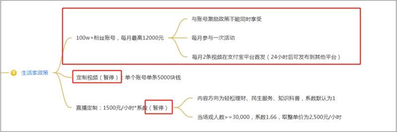 在“生活家政策”中,只保留了100万粉丝以上账号的奖励,该奖励要求账号每月有两条视频在支付宝平台首发,24小时才可发布到其他平台。