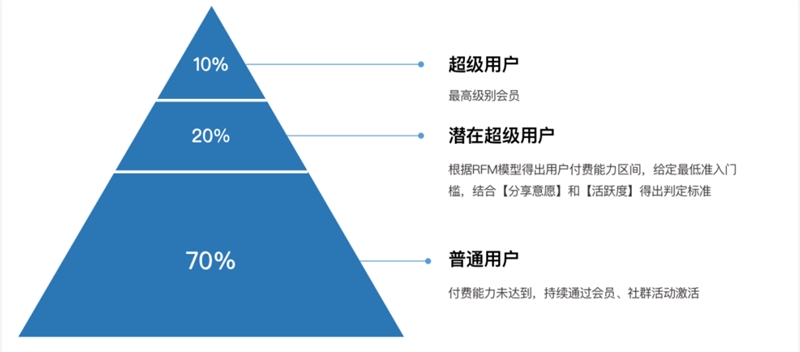 首先,先对用户有一套分层筛选机制和账号管理机制。超级用户约占到10%,潜在超级用户约占到20%。