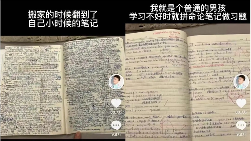接着,在网传张大大是复旦大学研究生的那段时间,他虽然没有正面回应,但他晒出了高中时期的密密麻麻的笔记,字迹清秀,也很励志;