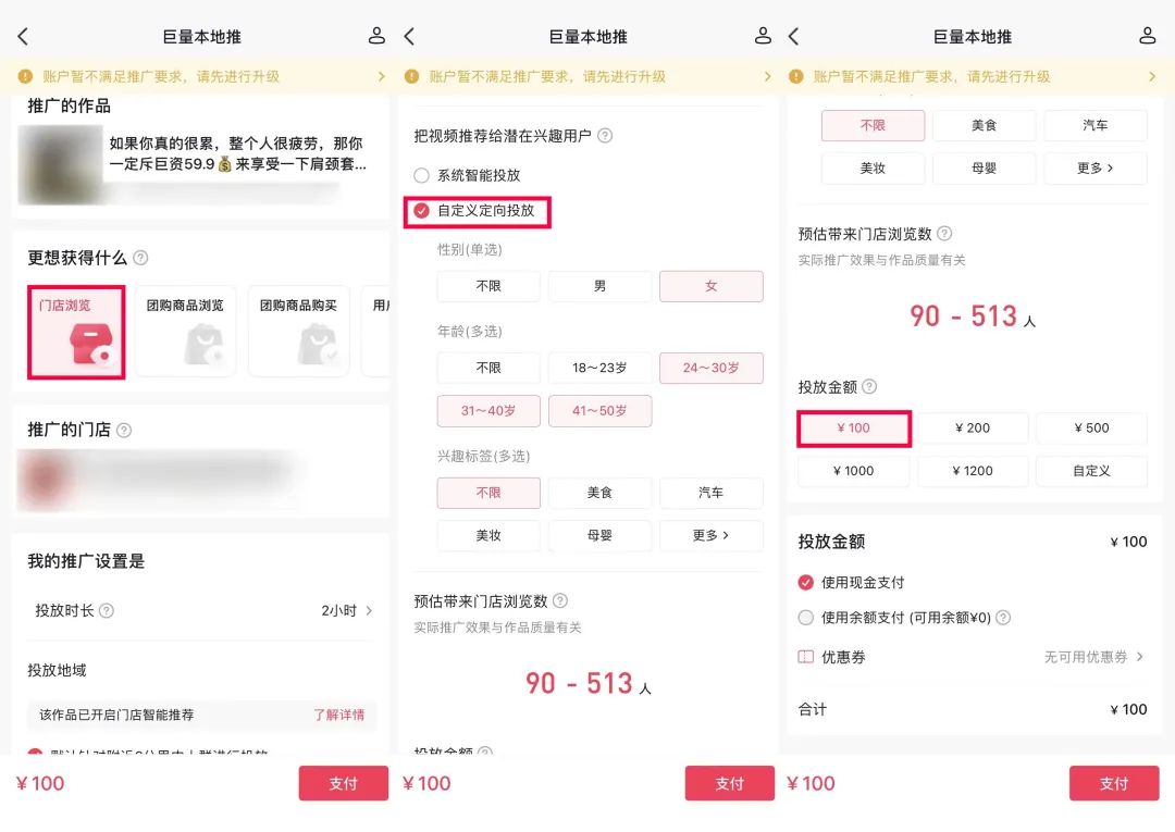 前面送东西的玩法过于简单,不赘述,大家自己测。再跟大家聊聊实体店占比较大的美业、餐饮等,如何用“抖音直播+本地推”打法卖团购券?