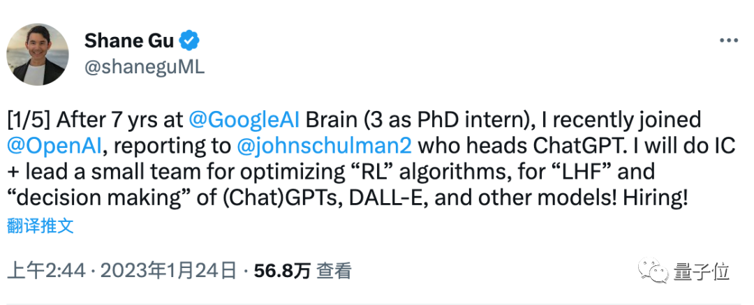 今年年初,大模型人才的跳槽愈发频繁。从谷歌加入OpenAI的谷歌大脑4人之一中,包括华人顾世翔(Shane Gu),谷歌大脑日本团队前成员,剑桥大学博士,本科在多伦多大学师从三巨头之一Hinton。去年5月,只要加上一句“让我们一步一步地思考”就能让GPT-3做数学题的准确率暴涨61%这事,就是顾世翔参与的研究发现。