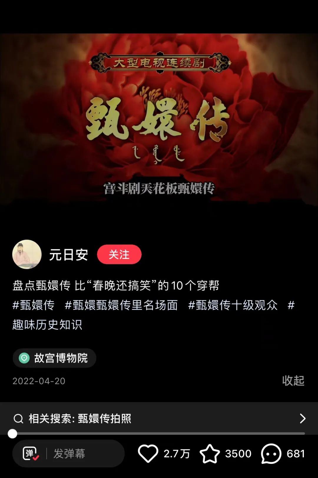 其次是一些穿帮镜头截图,一部分网友执着于找到影视剧中的穿帮部分,早期的电视剧例如《甄嬛传》就曾被网友扒出好几处穿帮镜头,网友对于这些截图或片段更是津津热道。