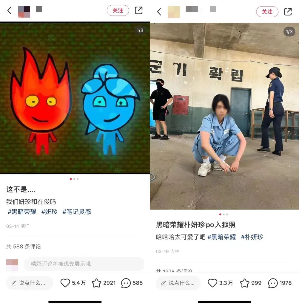 《黑暗荣耀》两季电视剧从剧内到剧外可延展的话题度都极高,自媒体们有充足的创作空间,不少媒体、博主,甚至个人用户都自发地为该剧进行二改、解说、创作段子或表情包,大量的图文和视频让《黑暗荣耀》系列在互联网反复“出圈”。