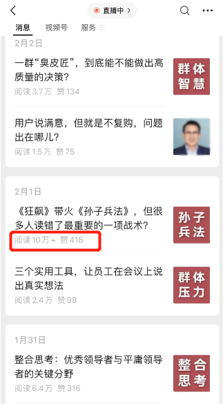 《狂飙》的热播也带动了公众号上知识号主深度解析《孙子兵法》的浪潮。据小编观察,相关文章中有不少阅读量达到10w+。