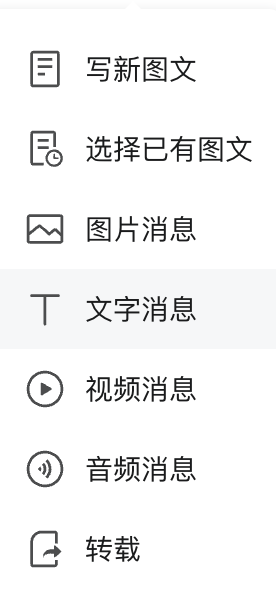 到现在为止,公众号上线了漫画、文字消息、视频消息、音频消息以及转载,但是写新图文仍然是主要江山。