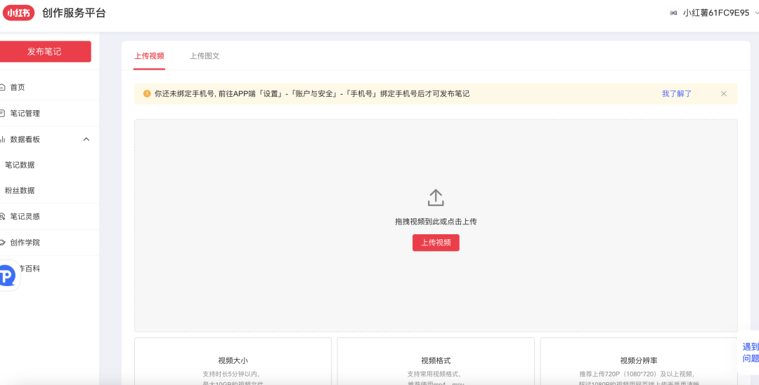 目前小红书发布的功能和移动端一致,笔记分为入口为上传视频和上传图文,有了网页端发布入口,相信小红书博主的创作门槛大大降低,可以直接对标小绿书了(微信公众号)